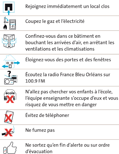 • Ne sortez qu’en fin d’alerte ou sur ordre d’évacuation