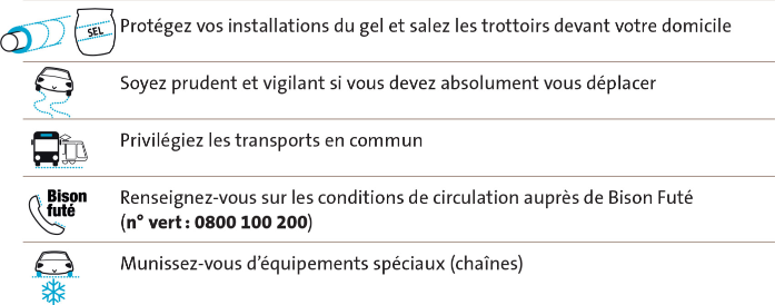 • Protégez vos installations du gel et salez les trottoirs devant votre domicile
